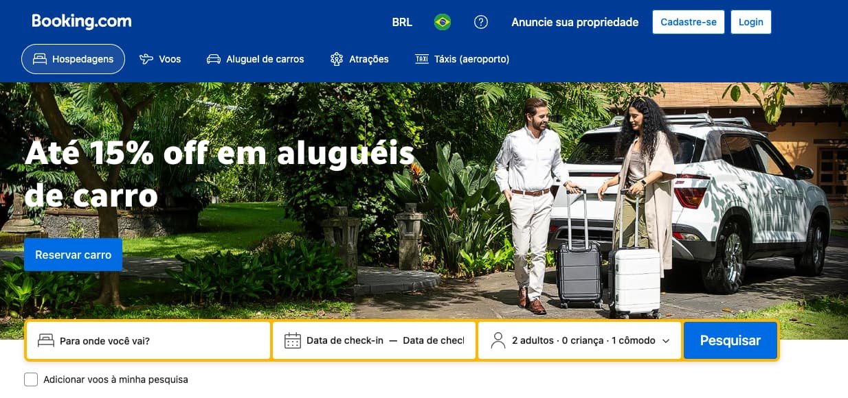 Booking com aluguel de carros