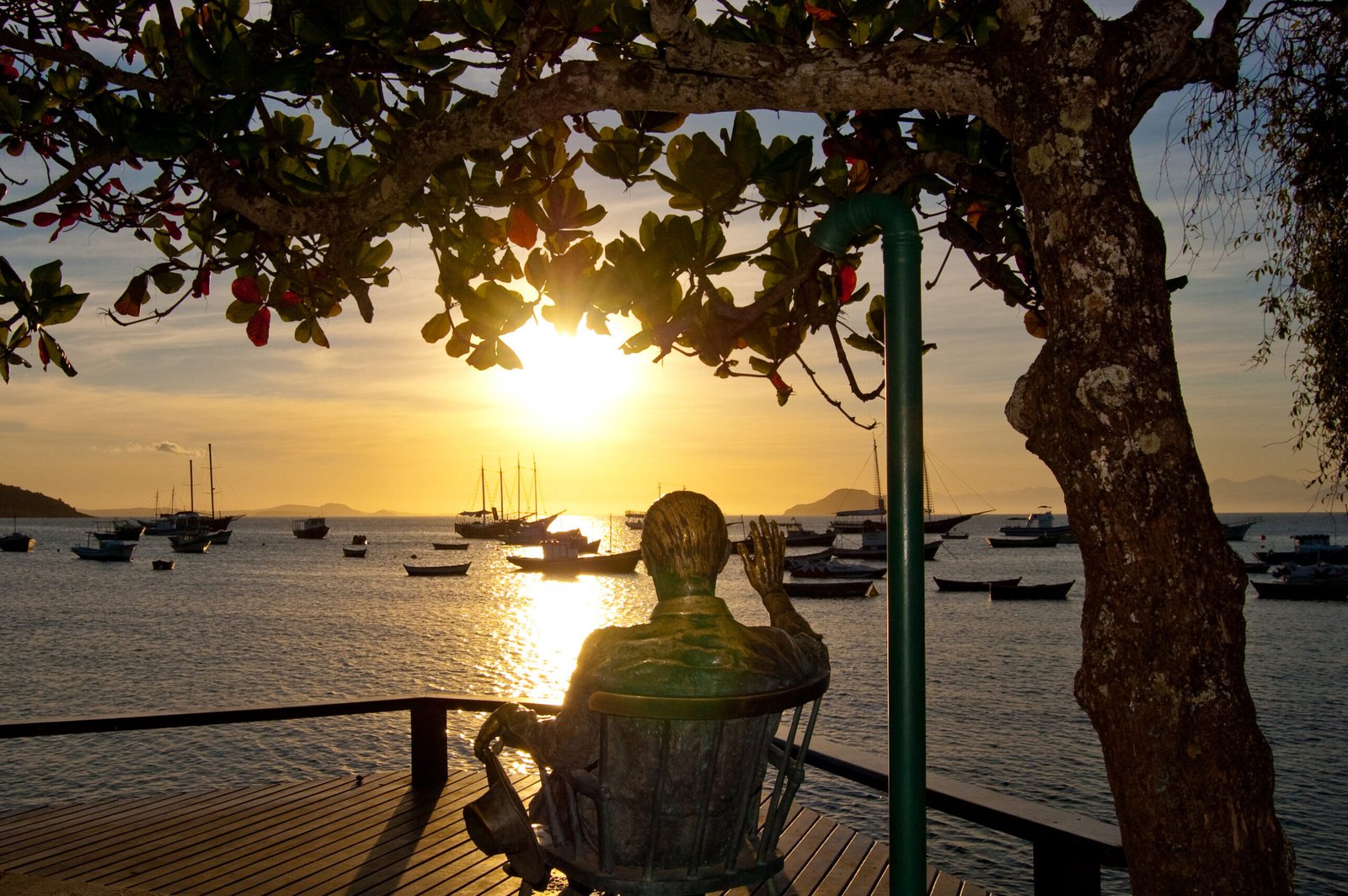 Embora o passeio seja delicioso a qualquer hora do dia, é ao entardecer que a Orla Bardot Búzios revela sua face mais encantadora. O pôr do sol visto deste ponto é considerado um dos mais bonitos da região. O céu ganha tons de laranja, rosa e violeta, refletindo nas águas calmas da Baía da Armação e criando uma silhueta inesquecível dos barcos e casarões.